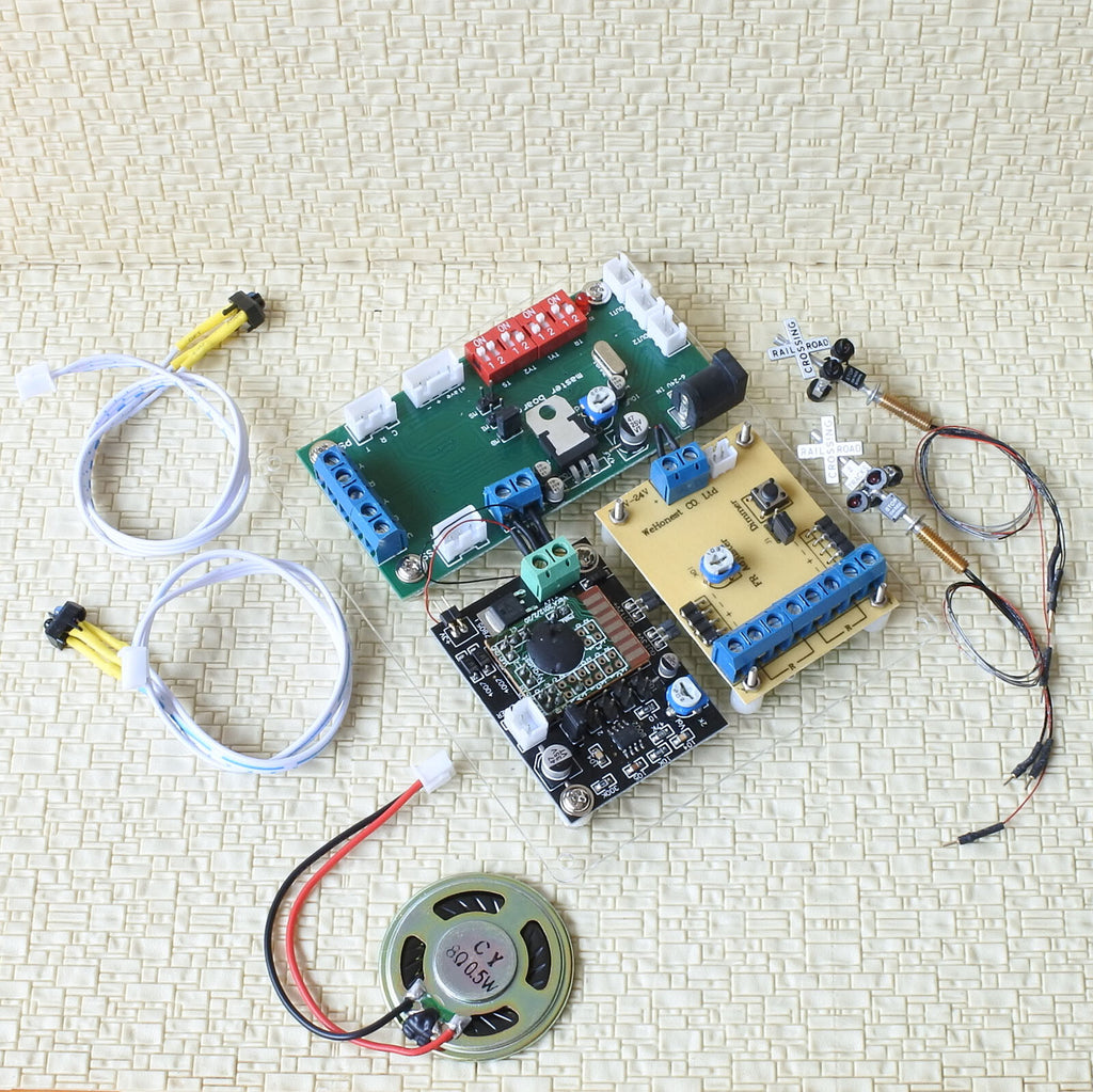 - 1 train detect board + 1 sound effect board + 1 circuit board flasher mounted on a ABS board ( 3 in 1 )