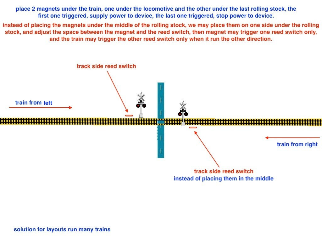 use it with the crossing signal sound effect board ( sell separately ) trigger them automatically by trains.