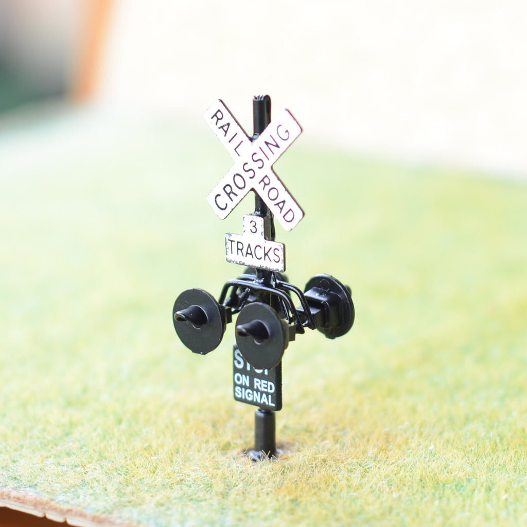 1 x HO scale 3 tracks grade crossing signal black LED made 4 target faces #3B4