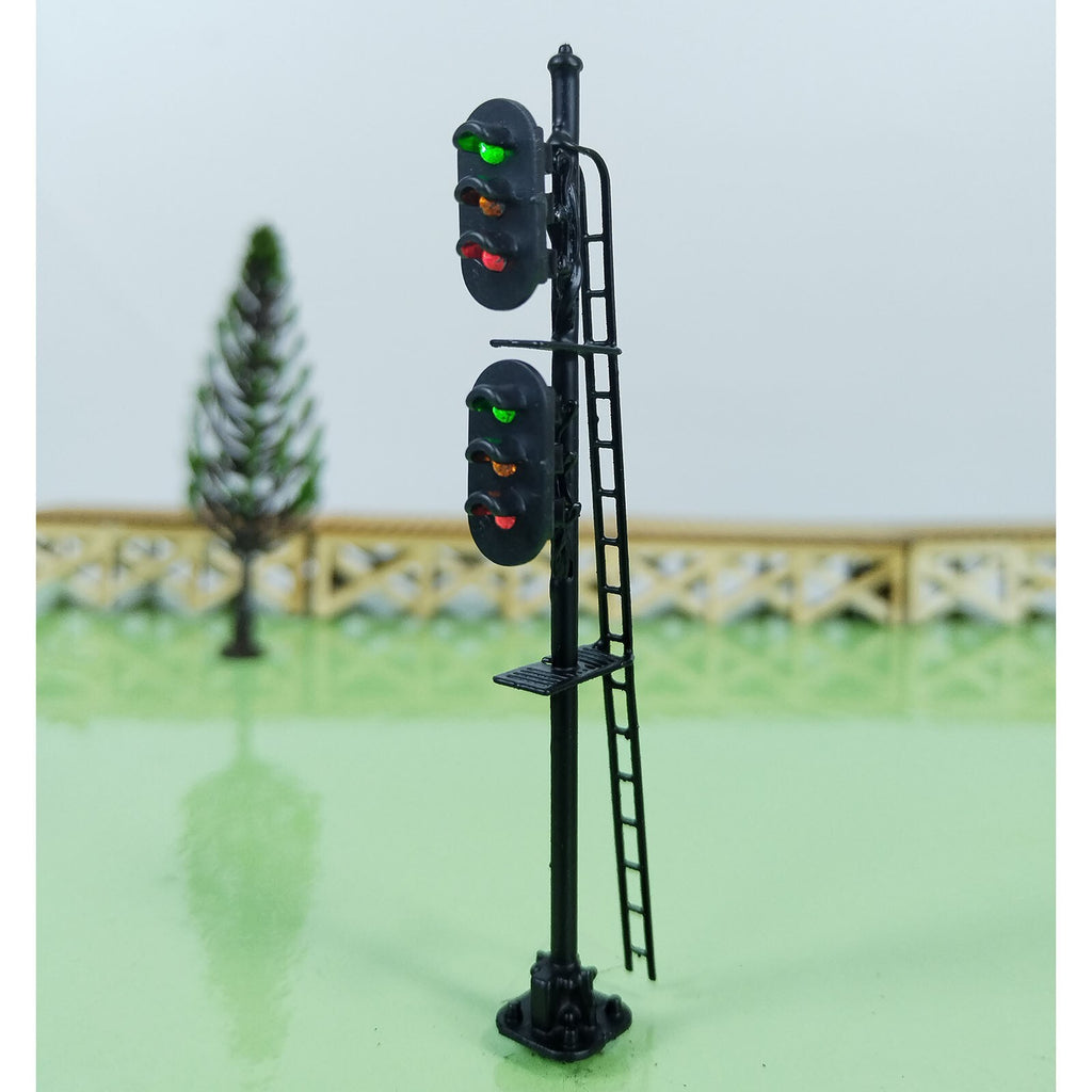 1 x HO scale model railroad 2 heads 3 + 3 aspects block signal LED made #K33SgBK