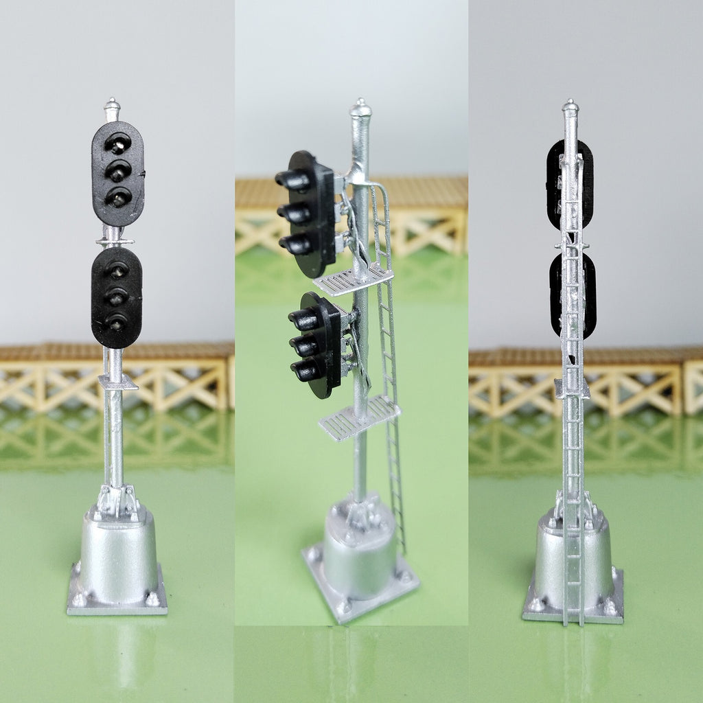 1 x HO scale model railroad 2 heads 3 + 3 aspects block signal LED made #K33Sp