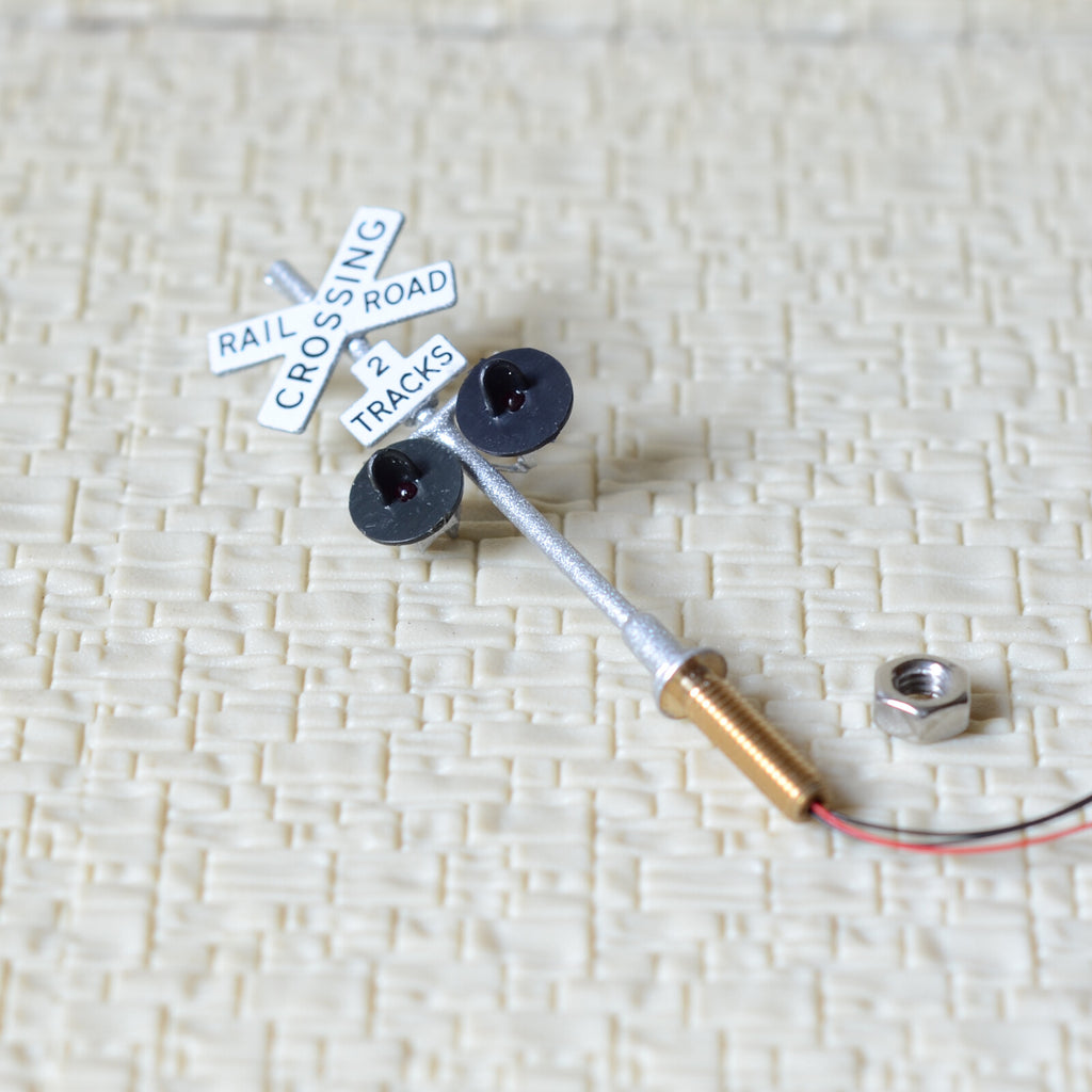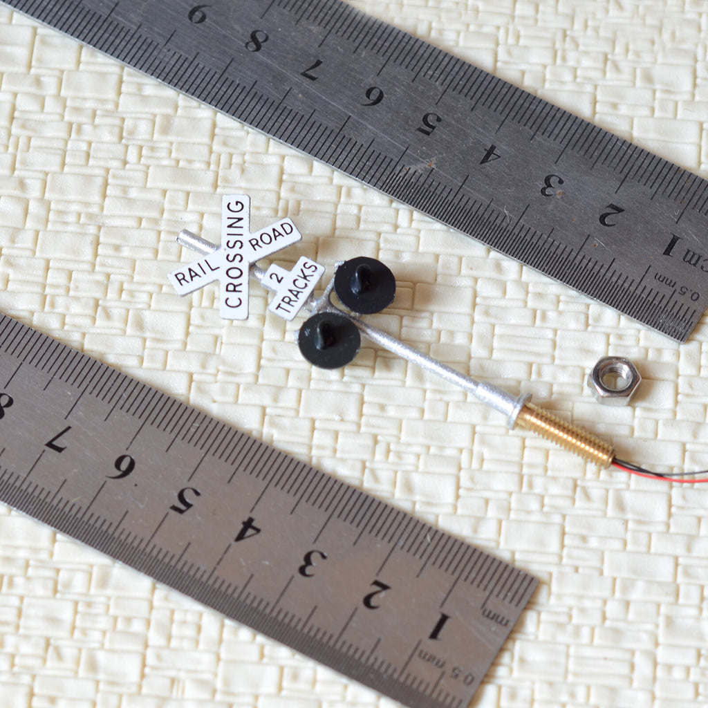 1 x HO Scale railroad crossing signals 2 tracks LED made 2 target faces silver