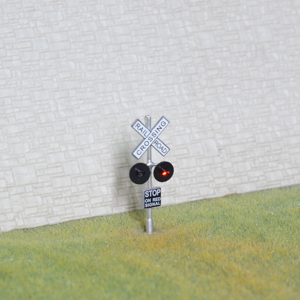1 x HO Scale railroad crossing signals LED made 2 target faces silver