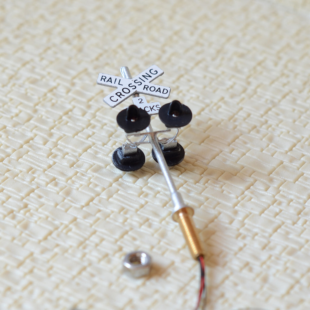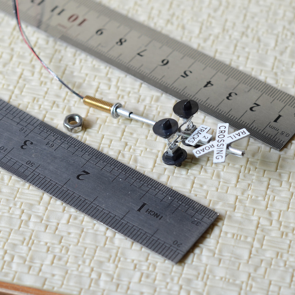 1 x HO scale railroad grade crossing signals 2 track LED made 4 target silver #X