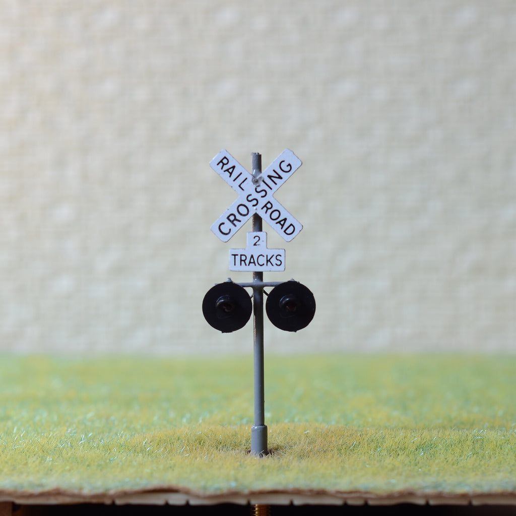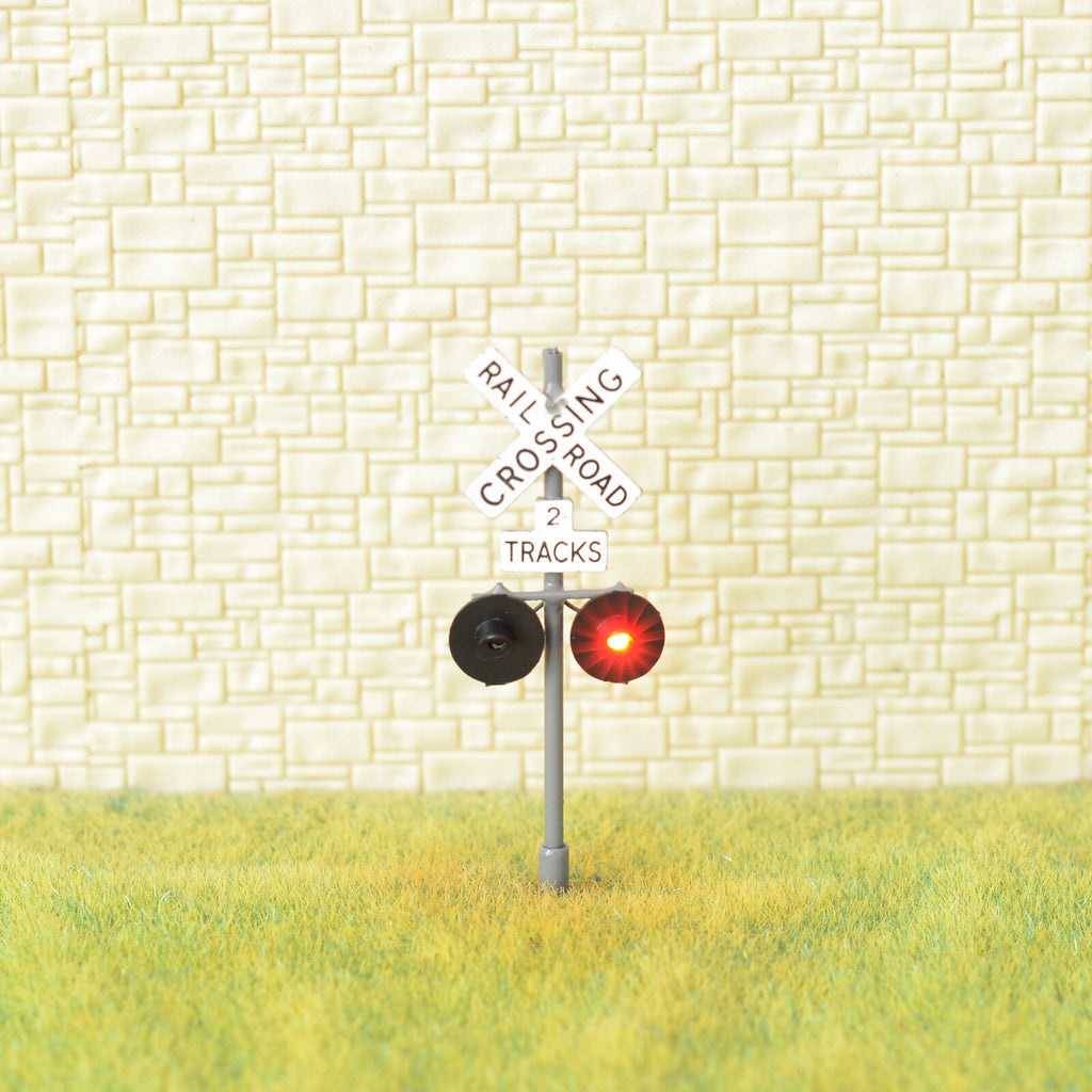 1 x HO scale railroad grade crossing signals 2 tracks sign LED made gray