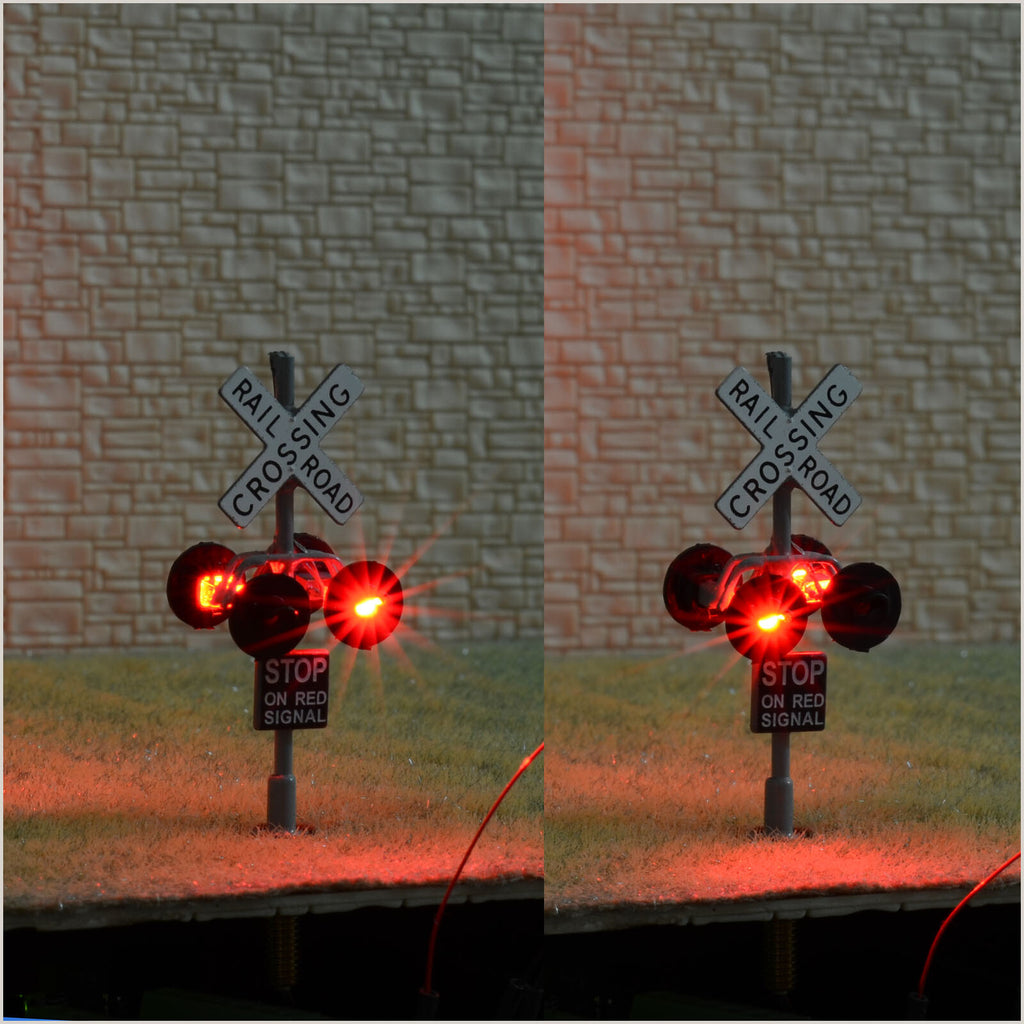 1 x HO scale railroad grade crossing signals common+ LED made double sides #G4C