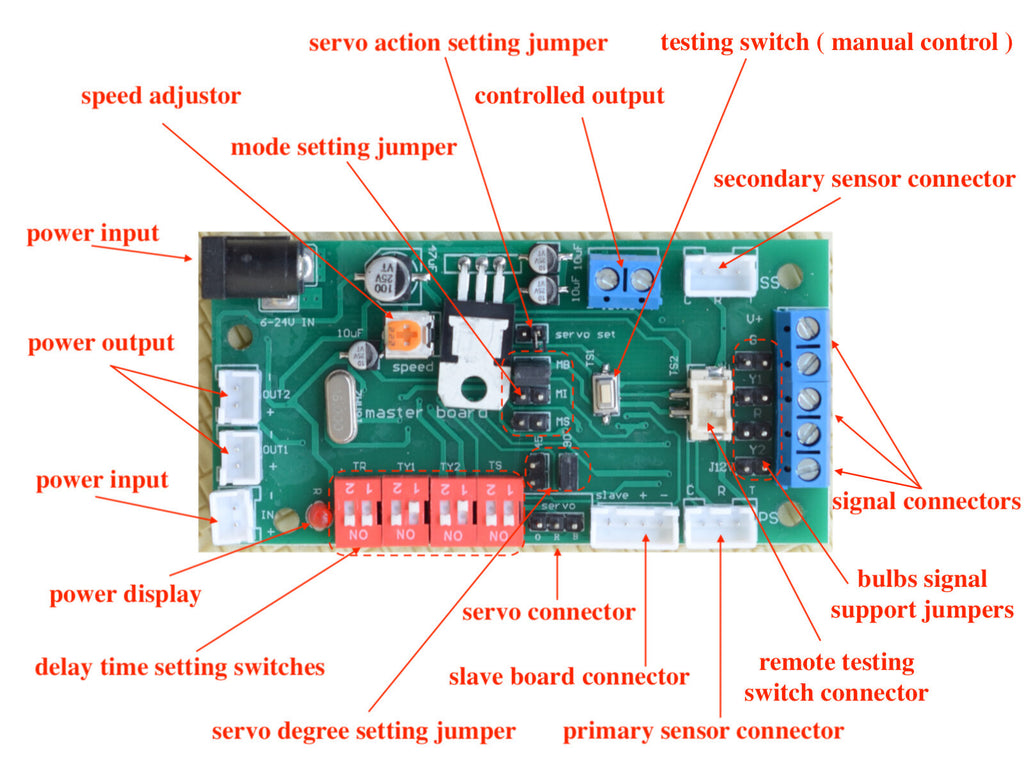 4, trigger the crossing signals’ sound effect board, flasher board, gate servo or other devices