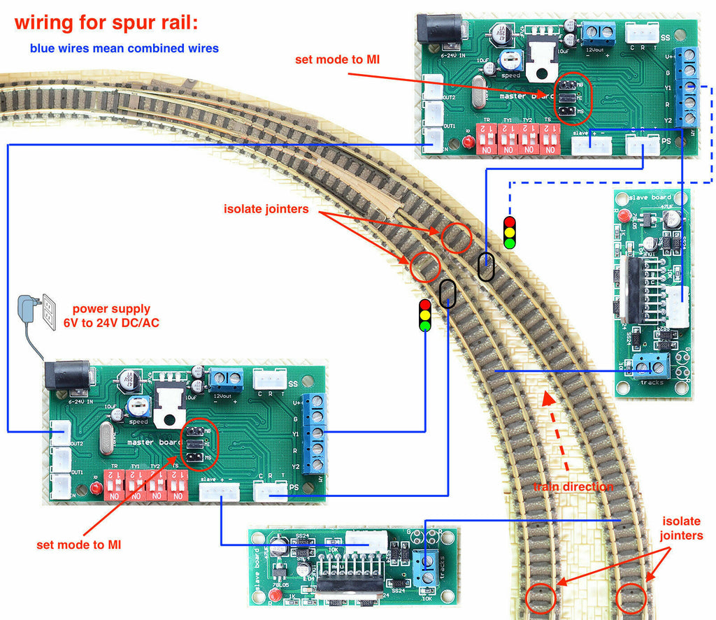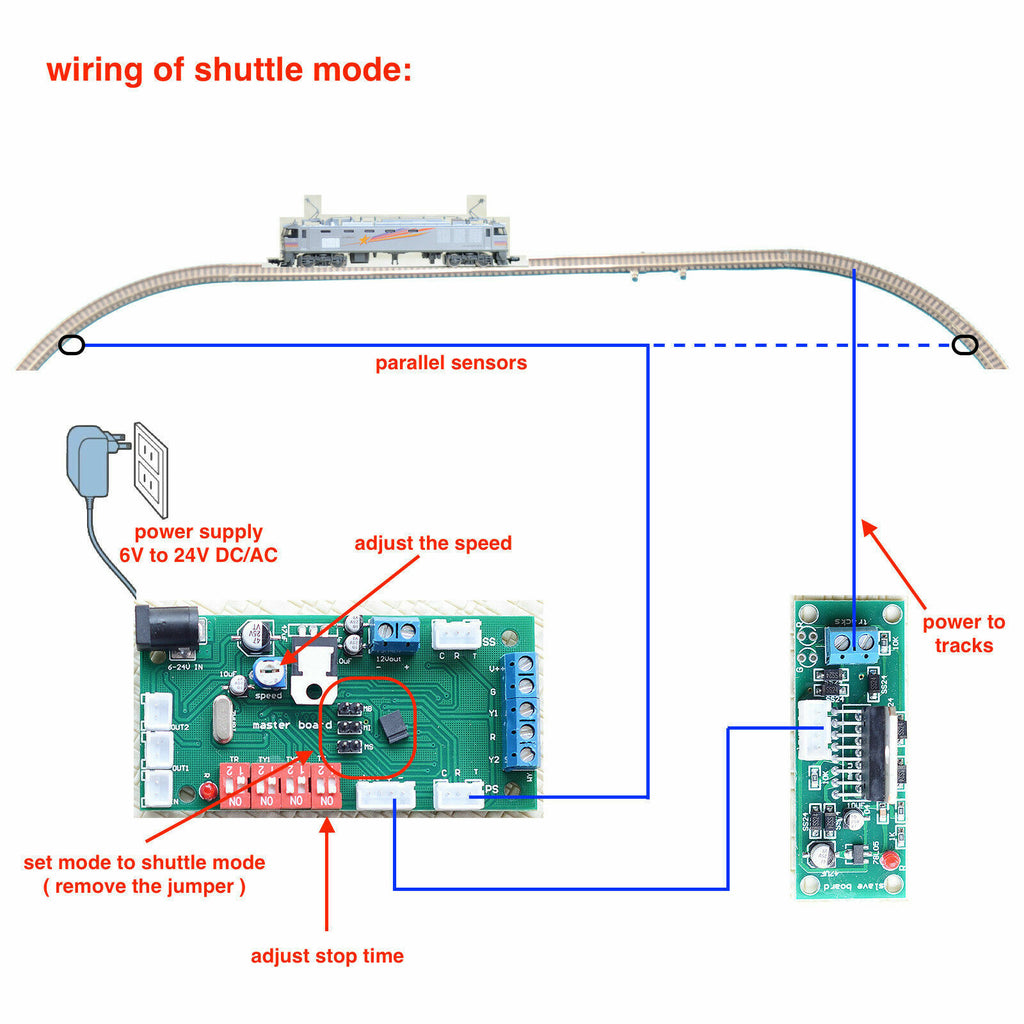 - use it with a slave board ( sell separately ), they may stop and restart trains at the station; or use them as shuttle train controller.