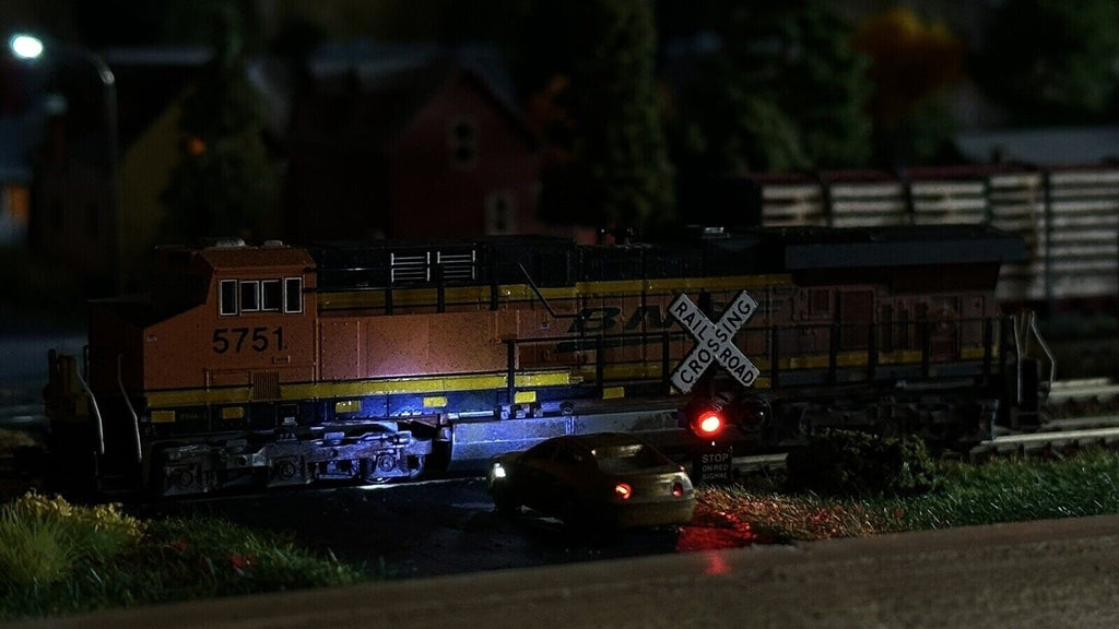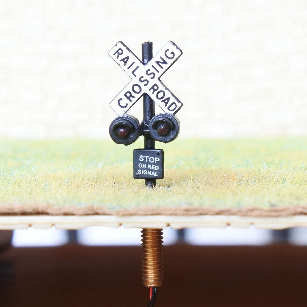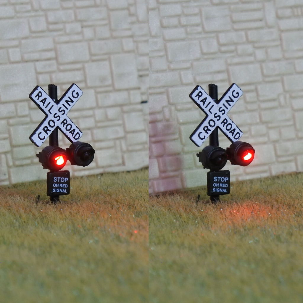 1 x N scale railroad grade crossing signal light 2 track sign LED made #csnBL6