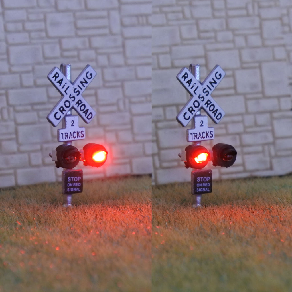 1 x N scale railroad grade crossing signals lights LED made 2 track sign #csnSL1