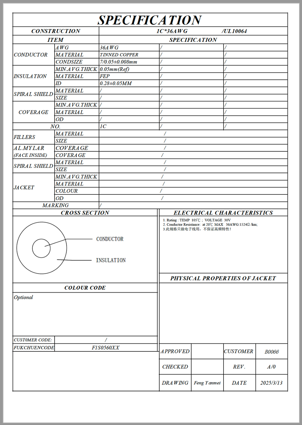 • 7/ 0.05(No./mm) : strands, 0.05mm each