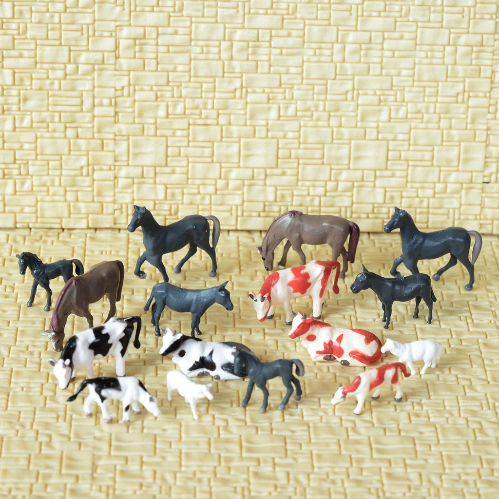 price for 16 x HO scale animals4 horses + 2 pony + 4 cows + 2 calf + 2 sheep + 2 donkey