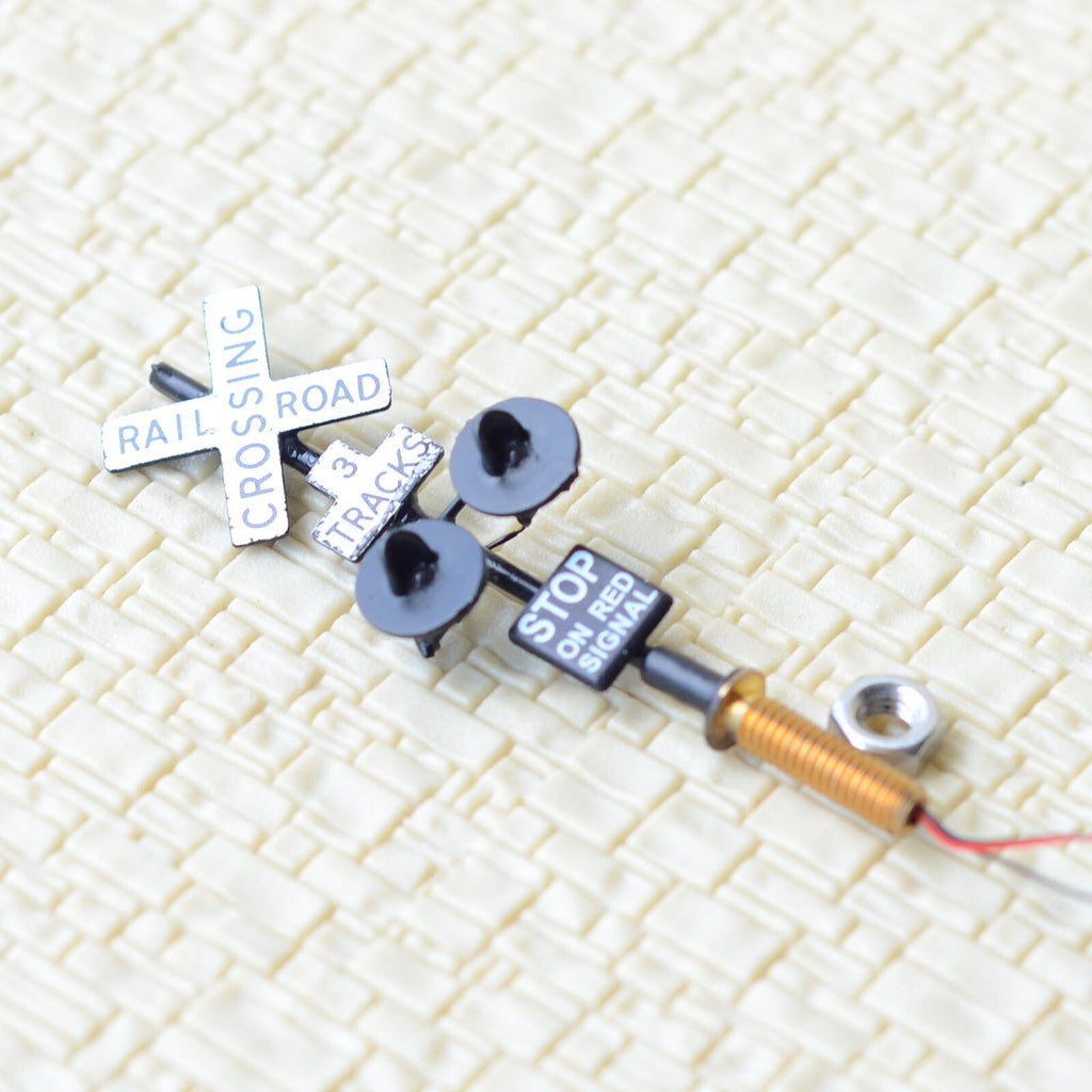 2 x HO scale 3 tracks grade crossing signals + 1 circuit board flasher #3B2