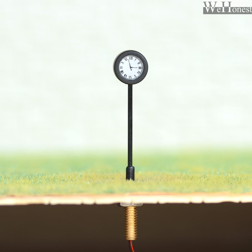 2 x HO scale antique station platform clock LED street light illuminated 2 sides