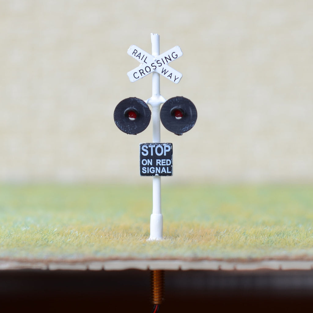 2 x HO scale model railway grade crossing signals + 1 circuit board flasher #W2