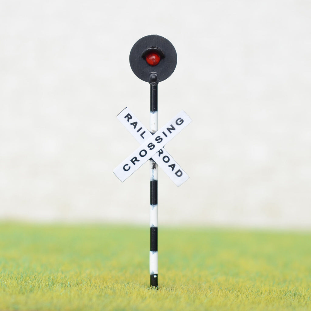 2 x HO Scale Railroad crossing signal light one target with flashing red led