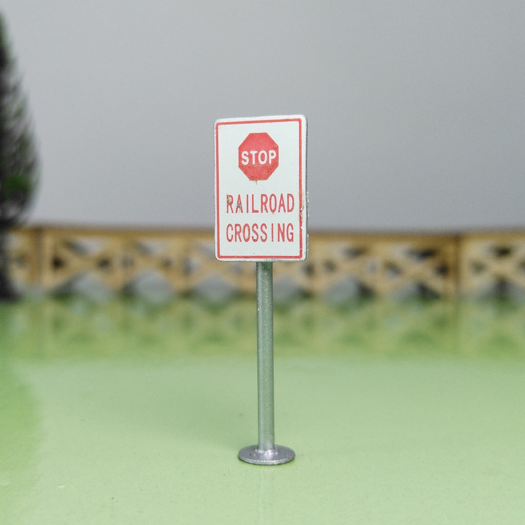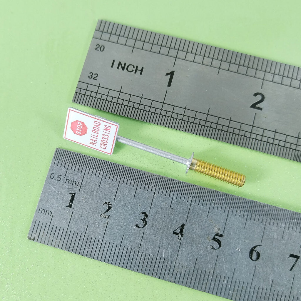 2 x HO scale railroad crossing warning sign STOP sign trackside caution sign #CP