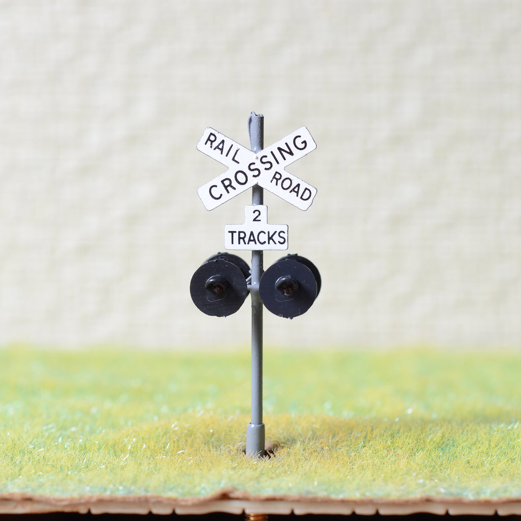 2 x HO scale railroad grade crossing signals 2 track LED gray + flasher board #X