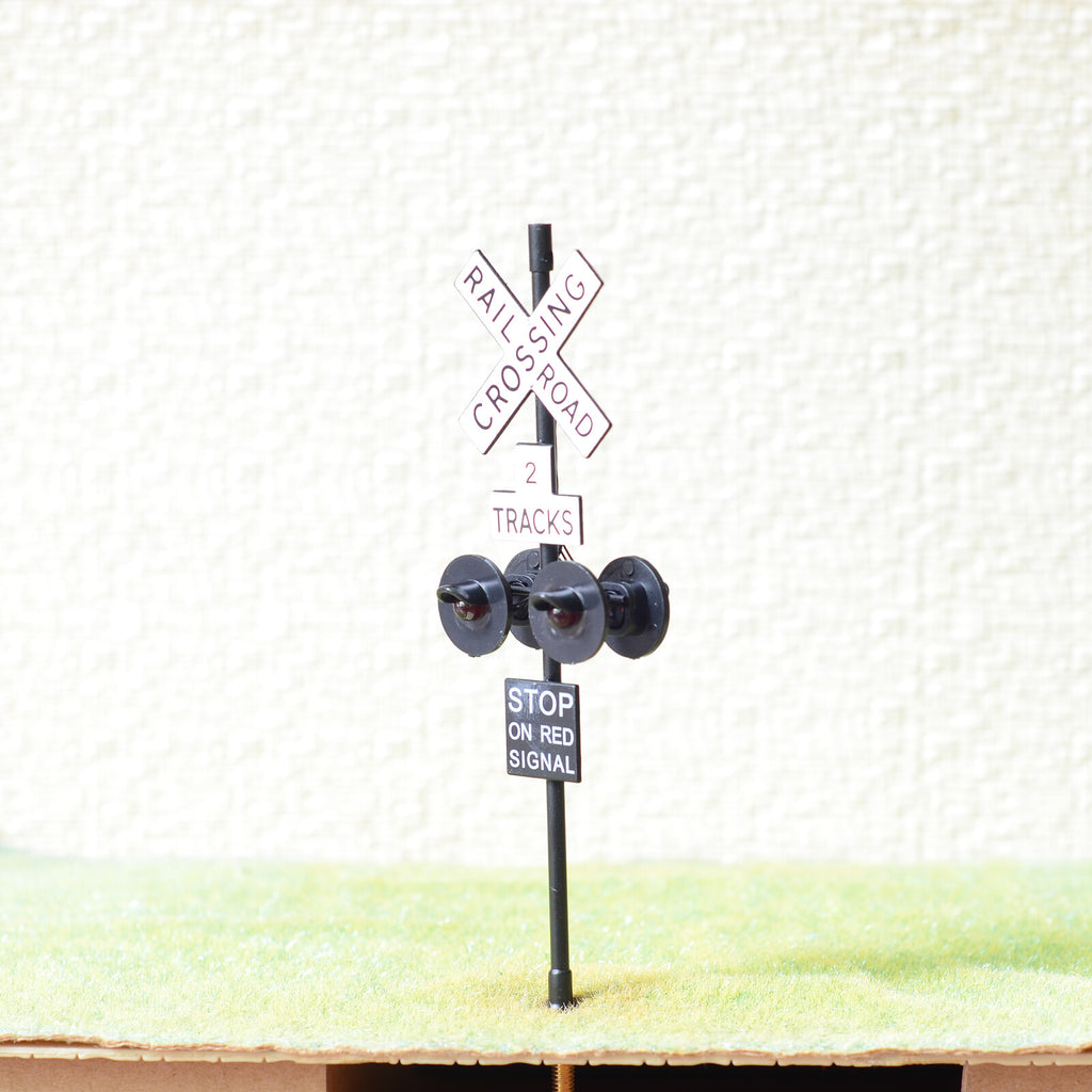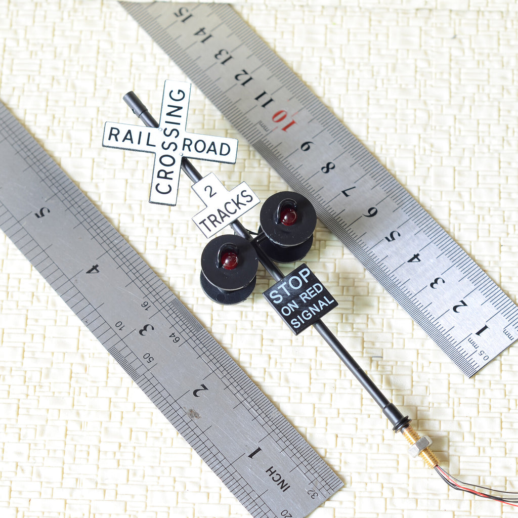 2 x O scale railroad crossing signals 4 heads + 1 circuit board flasher #2BL4
