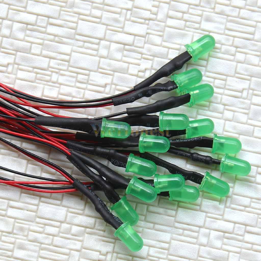 20 pcs Pre-Wired Dia.5mm Green LEDs prewired resistor for 12V - 16V use