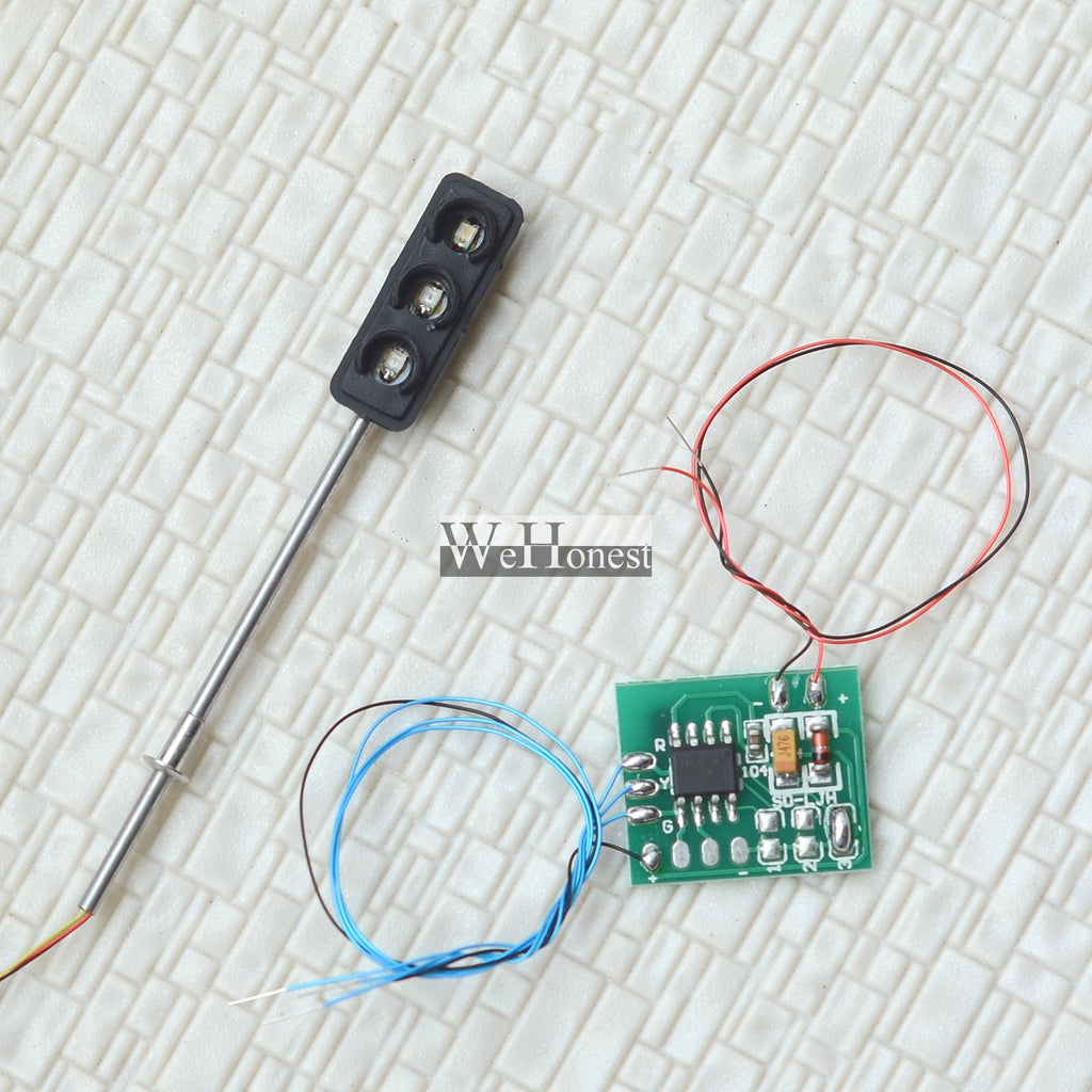 1 x OO / HO scale Model train Railroad Block led Signal Green over Red #G87   ON Sale 1 x HO Scale Model Train lamps Led Railroad Block Signals Lights G/Y/R   5 pcs HO scale 2mm LEDs made Railway 2 aspects Dwarf Signals Green over Red   4 x HO Scale Railroad Crossing Signals 2mm LEDs made + 4 Circuit board flashers   Control the Signals etc... automatically by trains, Delay Switches Circuit Board